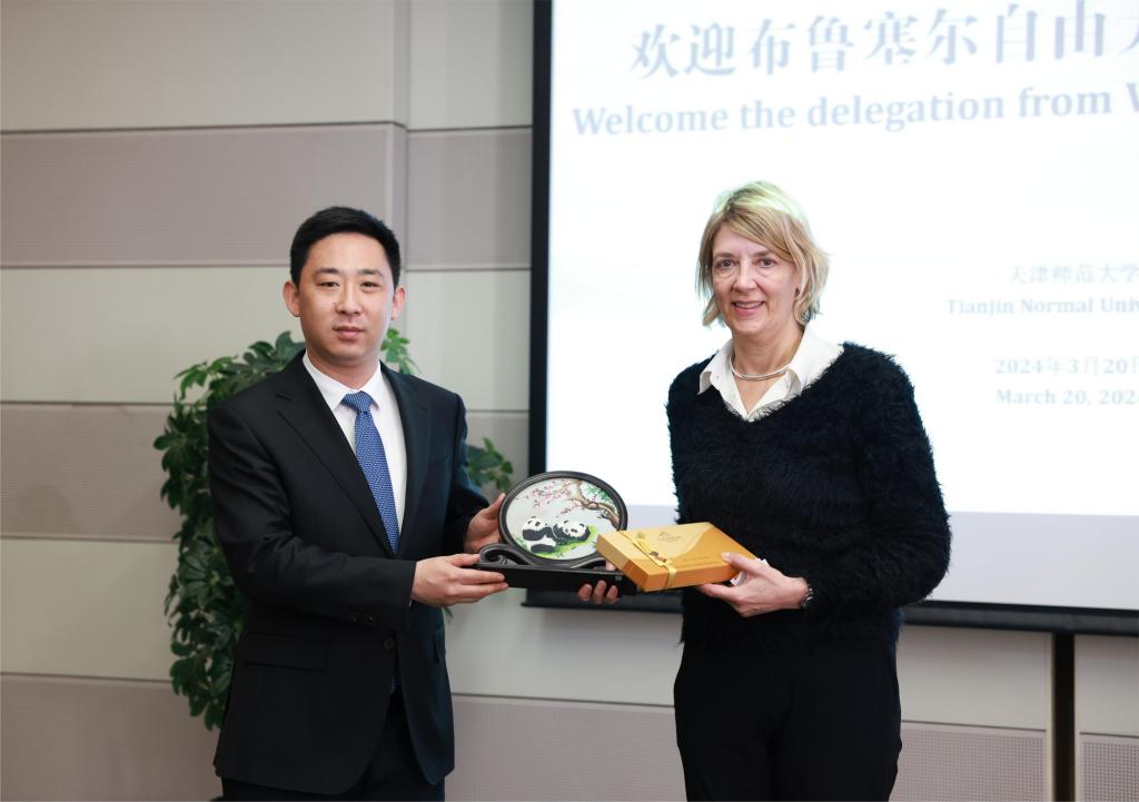 陈玳玮对布鲁塞尔自由大学代表团一行来访表示诚挚欢迎。他强调,今年年初,习近平总书记在北京会见来华进行正式访问的比利时首相德克罗,发表重要讲话,开启了中比双边合作的新篇章。春节前夕,习近平总书记亲临天津视察并发表重要讲话,为谱写中国式现代化天津篇章擘画了蓝图。天津作为中国北方最早和最大的沿海开放城市,也是中国最早与西方文明接触的城市之一,与比利时合作历史悠久。天津师范大学是天津百年师范教育的传承者,天津基础教育文脉发祥地。学校坚持开放办学,国际交流合作广泛,开展来华留学教育60年,拥有中国一流的国际中文教育基地,是天津市高水平对外开放的重要支撑。布鲁塞尔自由大学是天津师范大学重要合作伙伴,望贵我两校能够顺势而为,在教育交流、人才培养、科研合作等方面深化合作,为推动中比文化教育交流贡献力量。